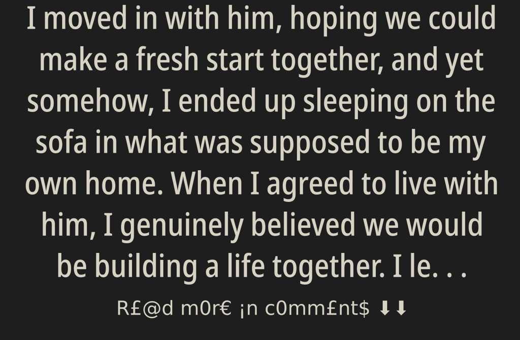 I moved in with him, hoping we could make a fresh start together, and yet somehow, I ended up sleeping on the sofa in what was supposed to be my own home. When I agreed to live with him, I genuinely believed we would be building a life together. I left behind my neighbourhood, my daily routine and most of my belongings. I took only my clothes, my dreams, and the hope that at last, I would have a home as a couple.