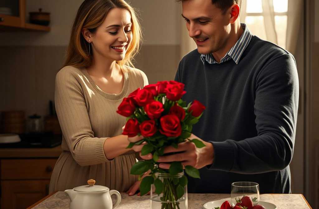 That evening something unexpected happened. Victor came in with a huge bouquet of red roses and a bag of eclairs from the bakery her favourite.