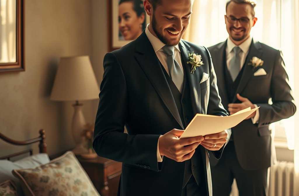 I pull my wedding suit from the wardrobe and an envelope slips onto the floor.