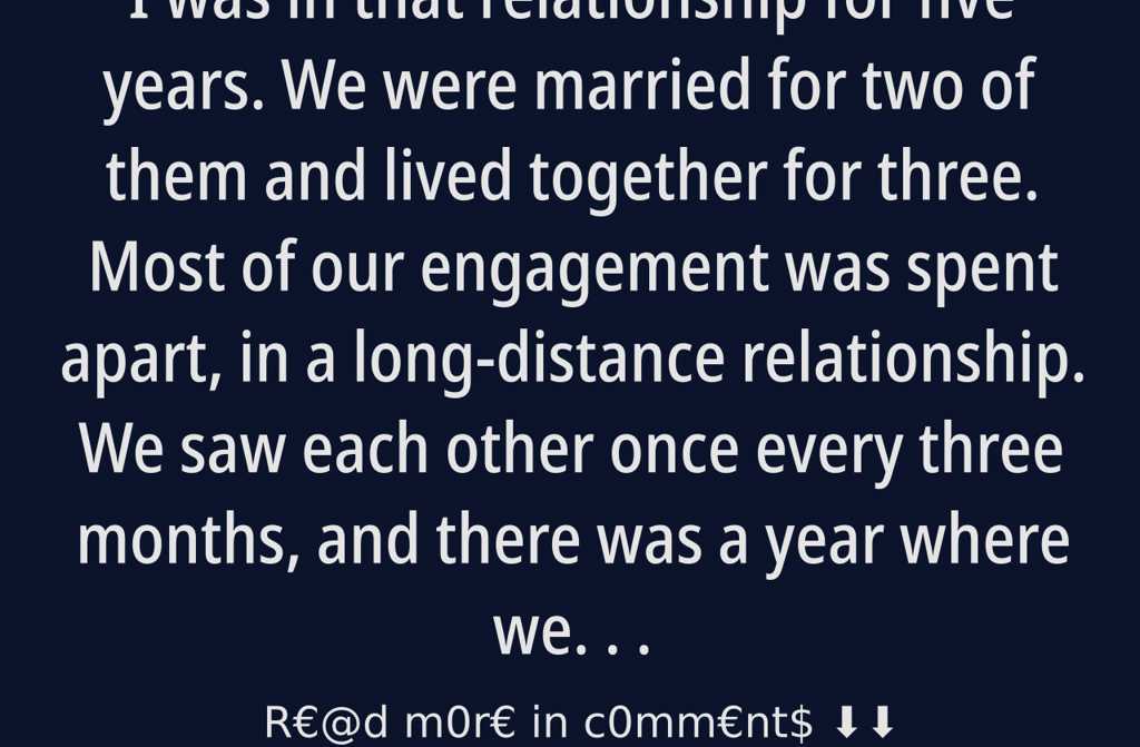 I was in that relationship for five years. We were married for two of them and lived together for three. Most of our engagement was spent apart, in a long-distance relationship. We saw each other once every three months, and there was a year where we only managed to be together twice because of his job. At the time, it didnt seem like a problem. In fact, I saw it as the perfect relationship. We missed each other, cried during our calls, poured out our love through messages and video chats. We never argued. There was no jealousyneither from him nor from me. We respected each others space. He could go out for dinner with friends, I could go to a party, and it never caused any issues. He even helped me choose what to wear. Not provocative outfitshe often told me that a particular dress was too fitted on me, and suggested I wear whatever made me look and feel good. He was never controlling. On the contrary, he seemed proud of me and how I looked. Everything was healthy, calm, just right.