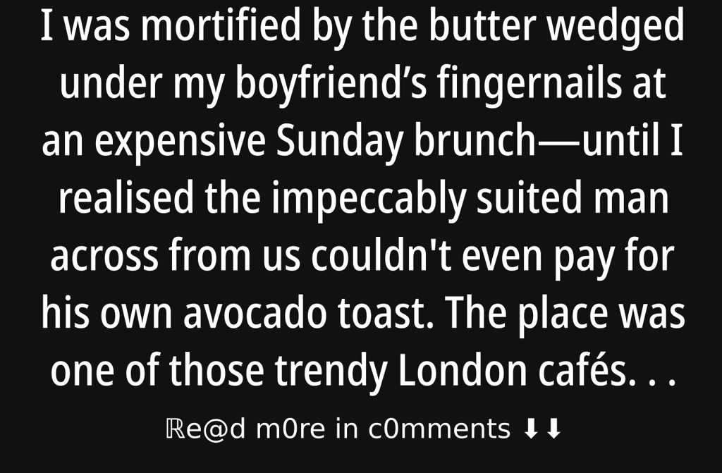 I was mortified by the butter wedged under my boyfriends fingernails at an expensive Sunday brunchuntil I realised the impeccably suited man across from us couldn’t even pay for his own avocado toast.