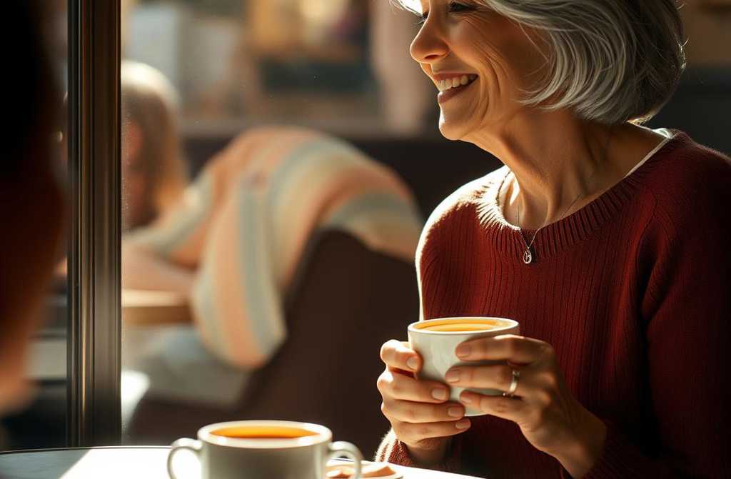 She sat by the window, watching the world pass by. At the next table, a group of young women chatted animatedly, their laughter genuine. When had she last laughed like that? Not politely, not forced, but freely?