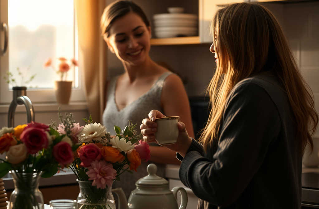 She came back to a tidy flat, to a husband whod cooked dinner and greeted her with flowers.