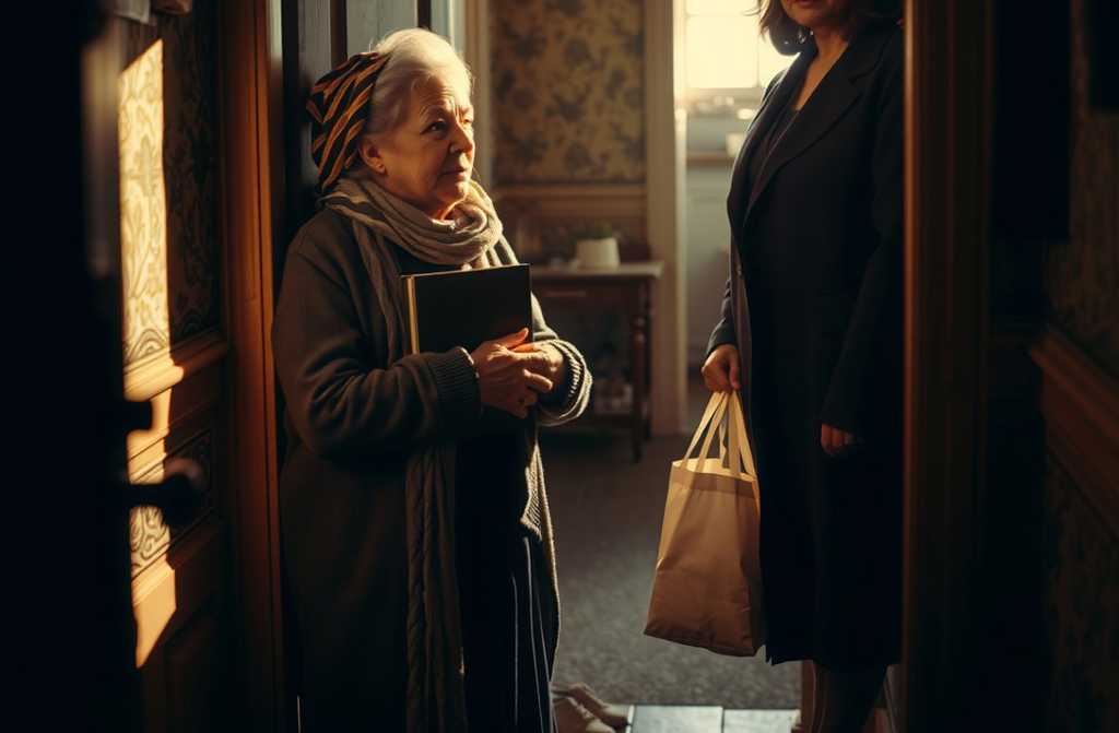 I knocked once. Silence. Then came shuffling from insidesoft, slippered steps, then a voice, dry and clipped, each word carefully measured: