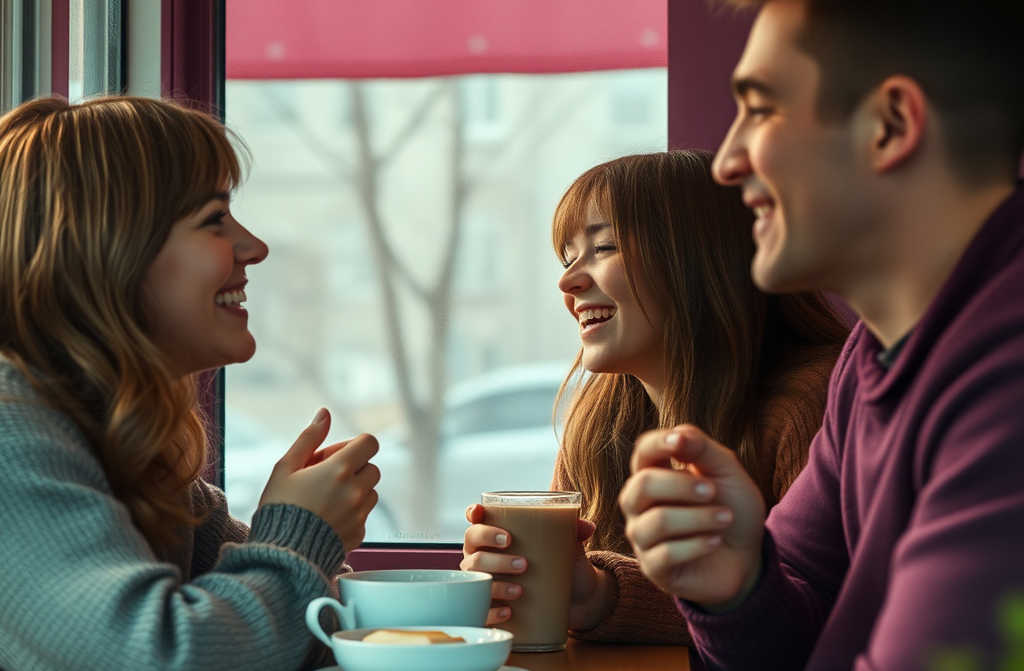 Their laughter blended into the gentle clatter of the coffee machine and hushed conversations around them.