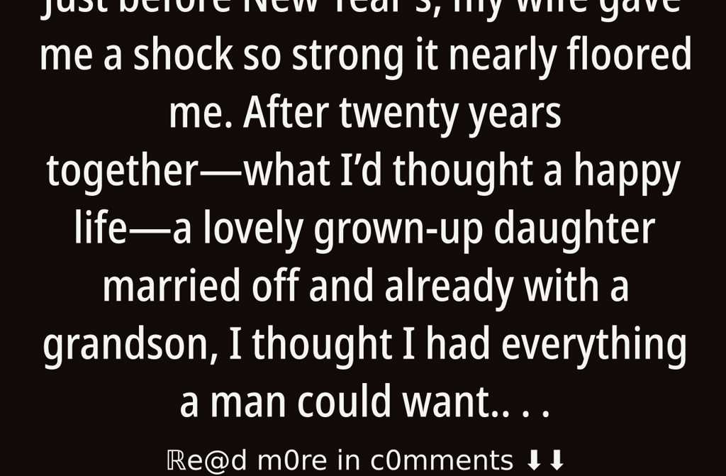 Just before New Years, my wife gave me a shock so strong it nearly floored me. After twenty years togetherwhat Id thought a happy lifea lovely grown-up daughter married off and already with a grandson, I thought I had everything a man could want. What more do you need? I should have been content, just enjoying what I had.