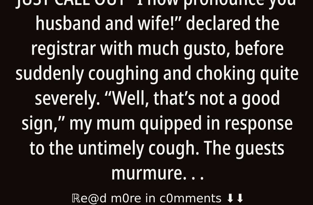 I now pronounce you husband and wife! declared the registrar with much gusto, before suddenly coughing and choking quite severely.