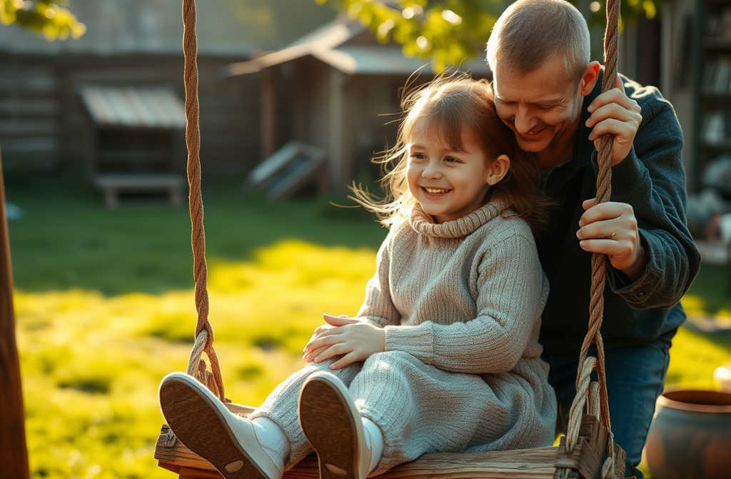 As she opened the garden gate, she frozeright in the middle of the yard stood a beautiful swing! It swayed gently in the breeze, inviting her over.