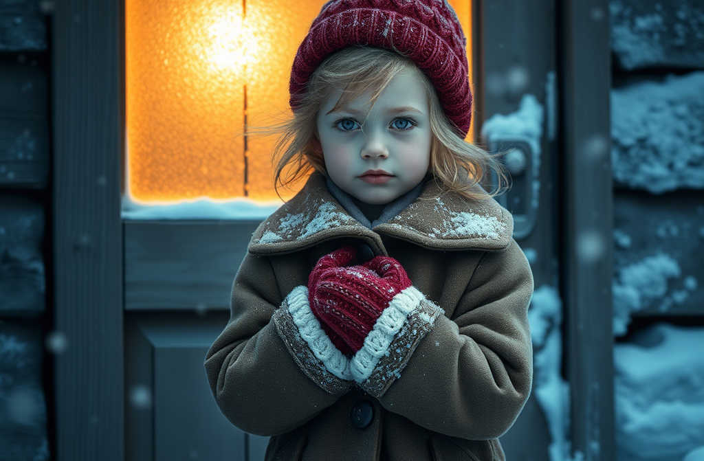 She wrapped her arms around herself, sniffling, and noticed the garden gate ajar. She slipped through, hoping any heat might thaw her freezing limbs. She thought of Mrs. Lucy, the neighbour who often offered milk, but Lucys house was dark. She knocked again, to no avail; perhaps nobody was home. She kept moving, the village edge drawing nearer as her cottage sat on the outskirts. Snow swirled, blinding her, and a gale howled, seeping under her coat. She called out for Dad, but in her mind only my angry face and my harsh wordsLeave me alone, Im not your mother!returned.