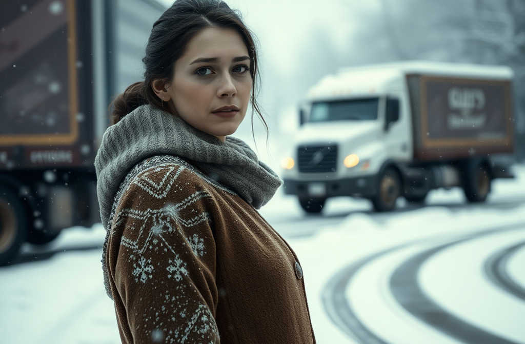 Nearby, a young woman, Emily, spotted the parked van. Suspicious, she watched as the men dragged something toward the woods. Heavy snow fell. Why unload in this weather? She noted the license plate.