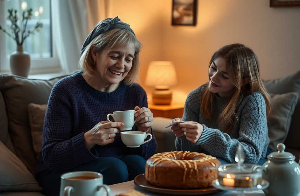 Mum and I live quietly and peacefully. In the evenings, we share a pot of tea, spend time knitting, or watch our favourite British films and TV shows. At weekends, I like to bake cakes, inviting our neighbours round for a treat. They tell stories of their own relations, and I find joy in hearing about others happiness. I always hope that my mother and I might be spared from hardship.