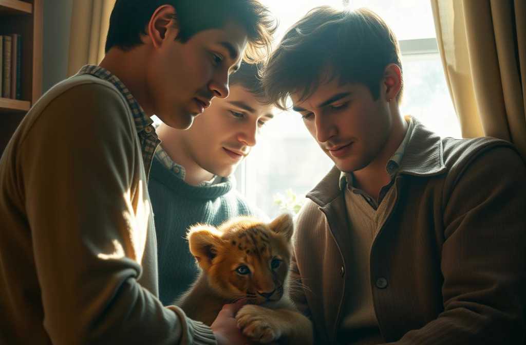 One afternoon, wandering the streets, they stumbled upon a peculiar pet shop. Exotic birds chattered in cages, monkeys swung from bars, but what caught their eye was a tiny lion cub curled in a corner. No bigger than a house cat, with mournful eyes that seemed to understand far too much.