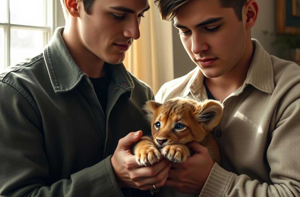 One day, wandering the streets, they stumbled upon a small exotic pet shop. Birds, monkeys, and reptiles peered from the displays, but their eyes locked on a tiny cage holding a lion cub. No bigger than a kitten, it had wide, sorrowful eyes that seemed to understand everything.