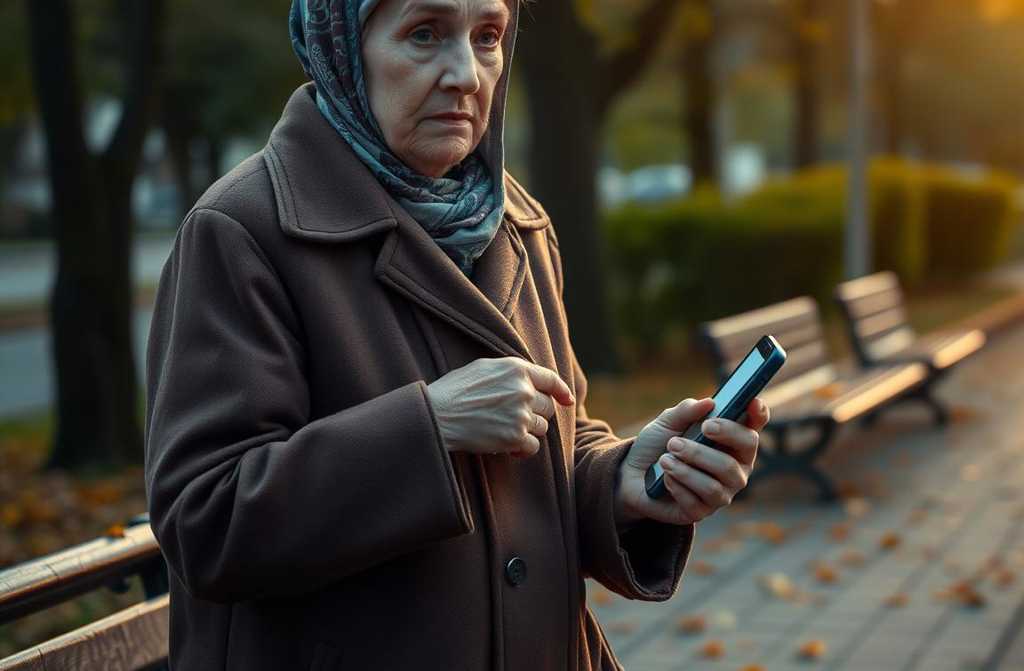 A lonely cleaner finds a phone in the park. Turning it on, she struggles to compose herself.