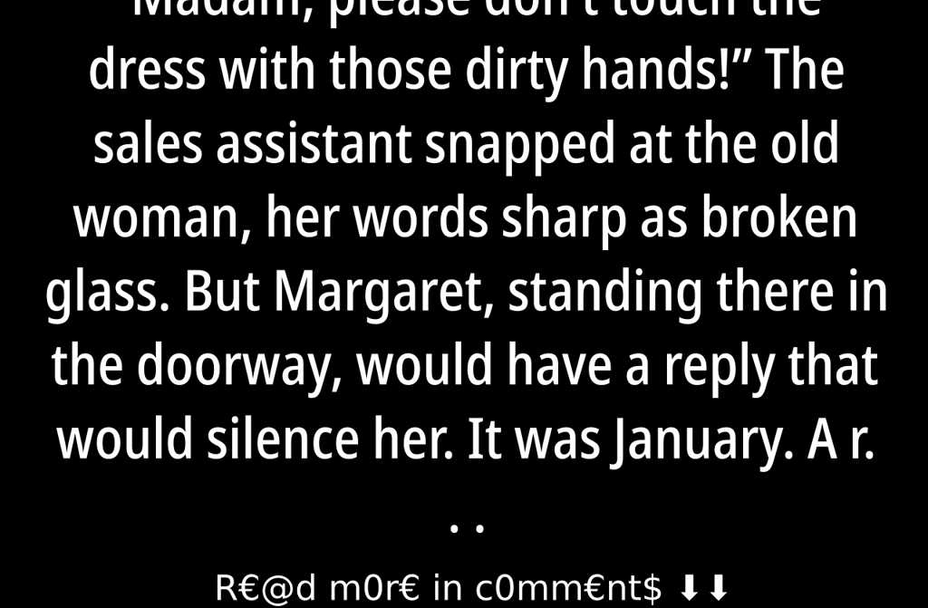 Madam, please dont touch the dress with those dirty hands! The sales assistant snapped at the old woman, her words sharp as broken glass.
