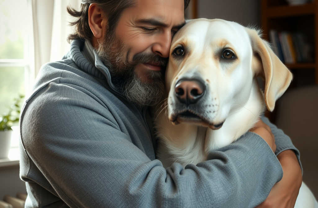 A burly, tattooed manwhose jet-black clothing and bristling beard make him seem as solid as oakfinds himself kneeling in a softly glowing veterinary room somewhere on the outskirts of Manchester. There, the world has the sort of blurry, patched-together feeling found only in dreams. He is cradling his beloved companion, a gentle old English bulldog named Daisy, who after fourteen years together seems strangely weightless in his arms, her head resting on his knee as if shes already halfway to a distant meadow.