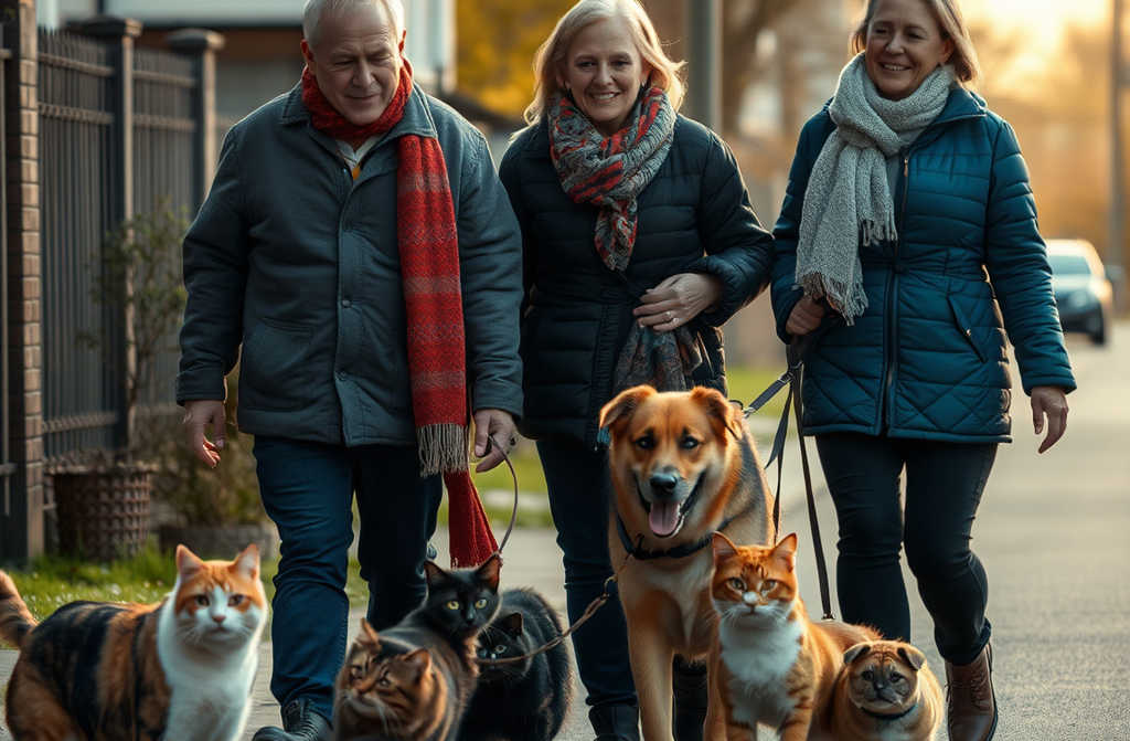 He named the dog Ralph. The vets patched Ralph up, and now every weekend Jamie visits me, and we all go for a walk. Actually, not just the three of ussometimes five or even six, as our cats tag along too, trotting behind of their own accord.