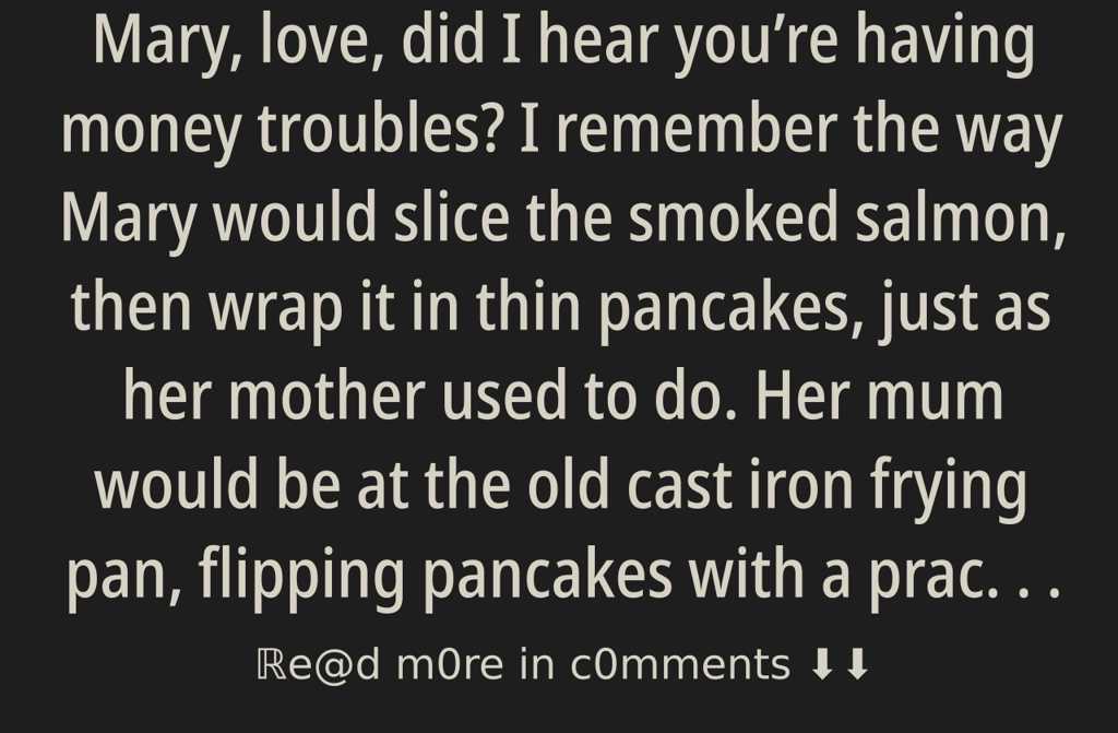 Mary, love, did I hear youre having money troubles?