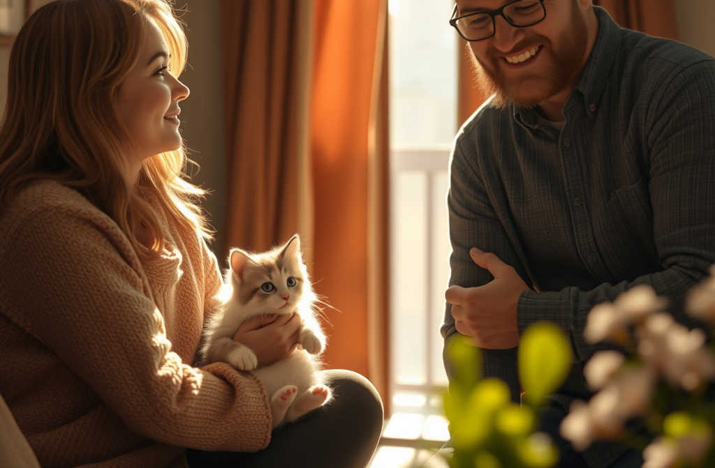 Nicholas slapped his forehead and ducked back in. He emerged with a small grey Persian kitten in his arms, wearing a familiar expression.