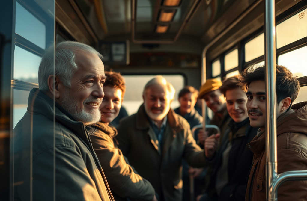 The old engine sputtered to life, the doors hissed, and the bus trundled away from the stop, swaying gently like a boat leaving port. In the dim light, apart from the newcomers, there were maybe ten peopleif you counted the conductor. She stood up and headed for the group, gripping her roll of tickets.
