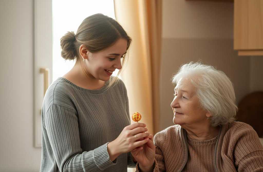 Grandma struggled with the wrapper, fingers uncooperative. When the cup was empty, Maisie led her back to bed.