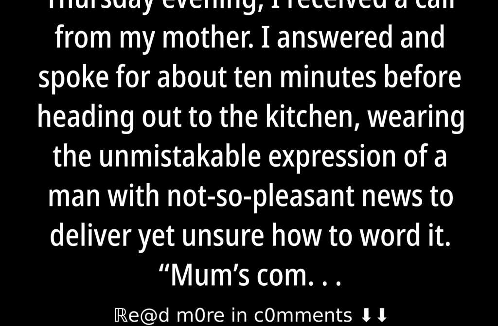 Thursday evening, I received a call from my mother. I answered and spoke for about ten minutes before heading out to the kitchen, wearing the unmistakable expression of a man with not-so-pleasant news to deliver yet unsure how to word it.