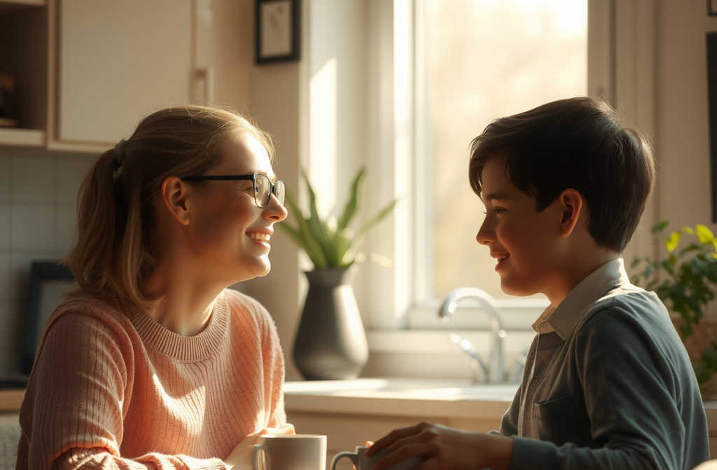 His mother was sitting at the table. Not yelling, not making a fuss. Just sitting, gazing out at the grey morning. There was a mug of tea in front of her, long since gone cold.