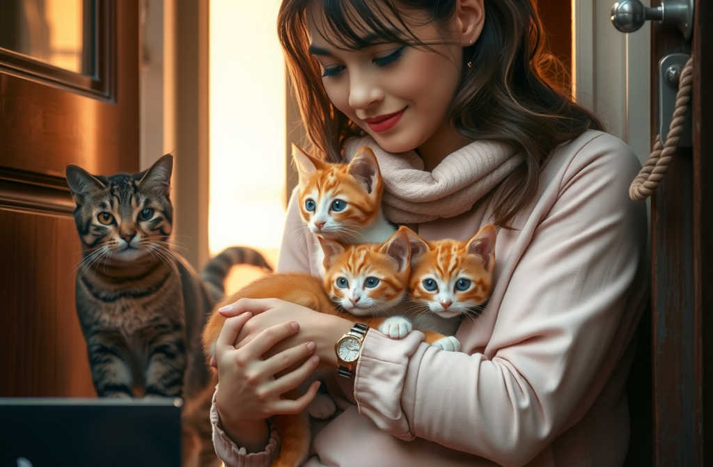 Well, excuse me! I called out, ready to close the door just as he reappeared, this time with a tiny ginger kitten dangling from his jaws.
