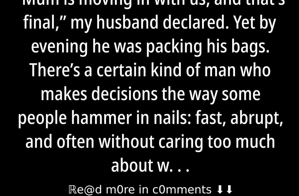 Mum is moving in with us, and thats final, my husband declared. Yet by evening he was packing his bags.