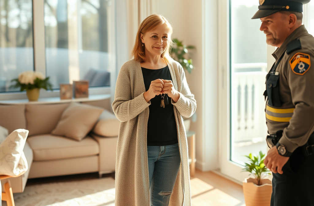 Thanks for coming. Looks like the occupants have left, but Id like to check the propertys condition with you, she told the officer.