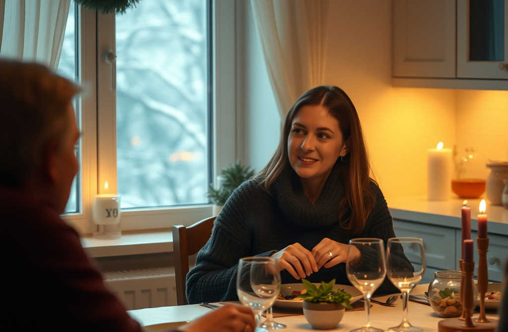 Maggie, its just youll never believe it I found Alice at the office sobbing her eyes out! Complete disaster: her flat flooded, electrics gone, freezing cold, plumber wont be out until the third. No family nearby, all on her own for New Year! I couldnt just abandon her, could I? I said, Come round to ours Margarets set the table for a banquet, shes an absolute angel, she wont mind