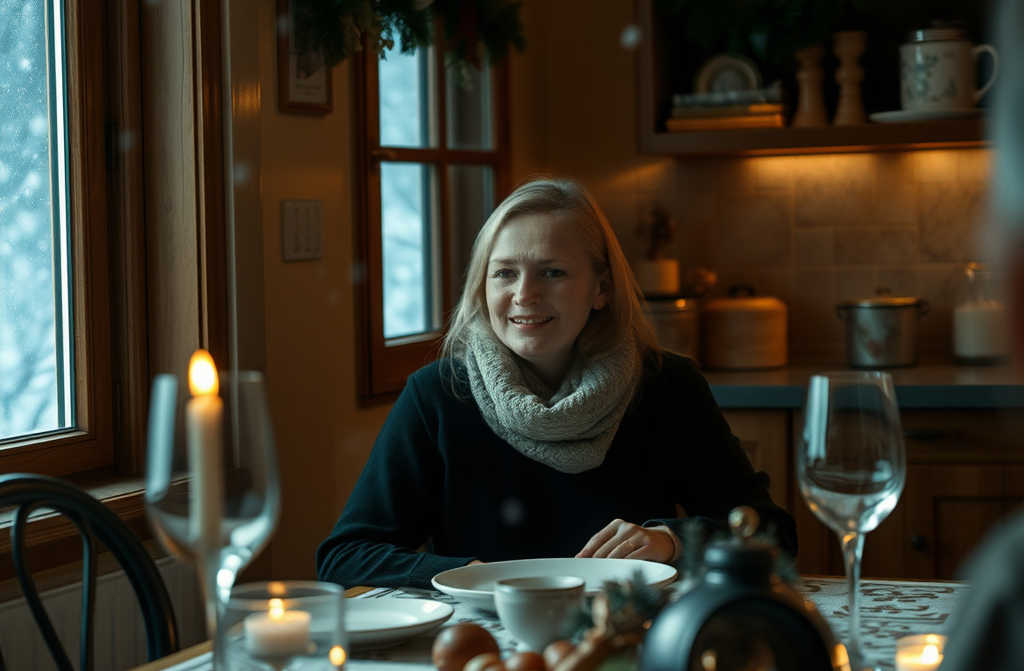 Dinner began under a curtain of tension. Margaret moved in silence, laying out plates. Alice, now rid of her coat, flaunted a form-fitting, low-cut dress, absurdly out of place. She lounged back, swirling her glass languidly.