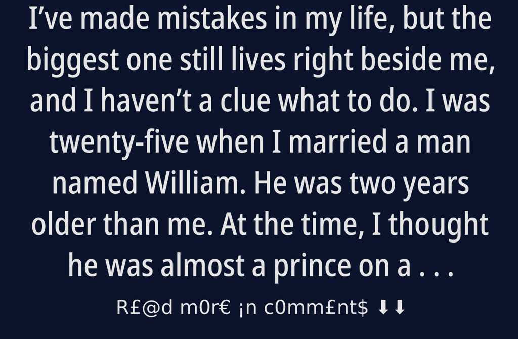 Ive made mistakes in my life, but the biggest one still lives right beside me, and I havent a clue what to do. I was twenty-five when I married a man named William. He was two years older than me. At the time, I thought he was almost a prince on a white horse.