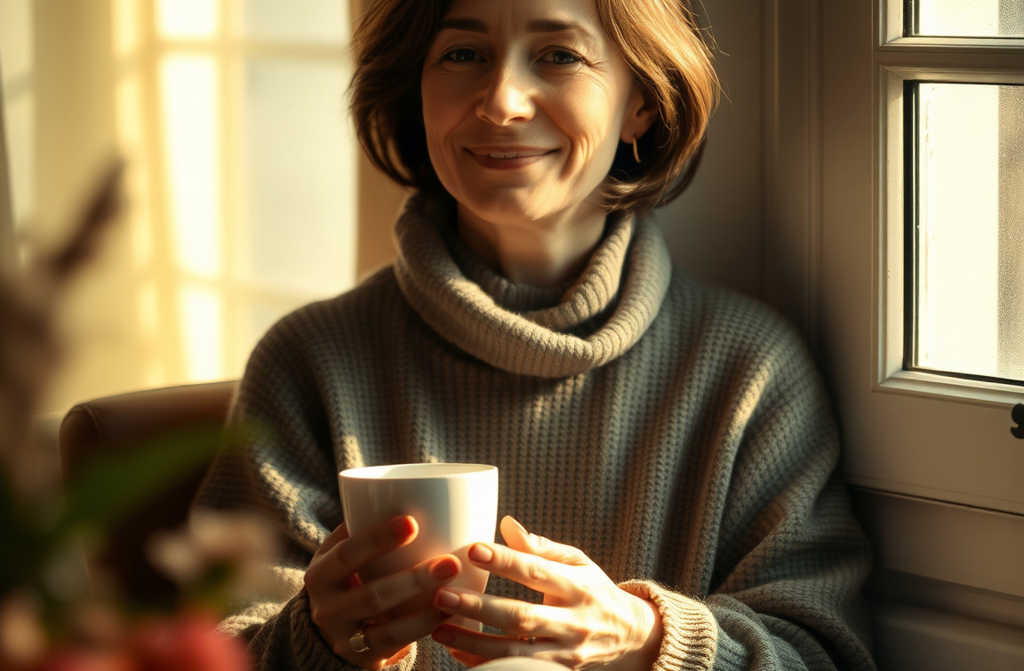 I sat by the window, tea in hand, looking round my little flatcosy, warm, filled with light. It was mine. My space. My life.