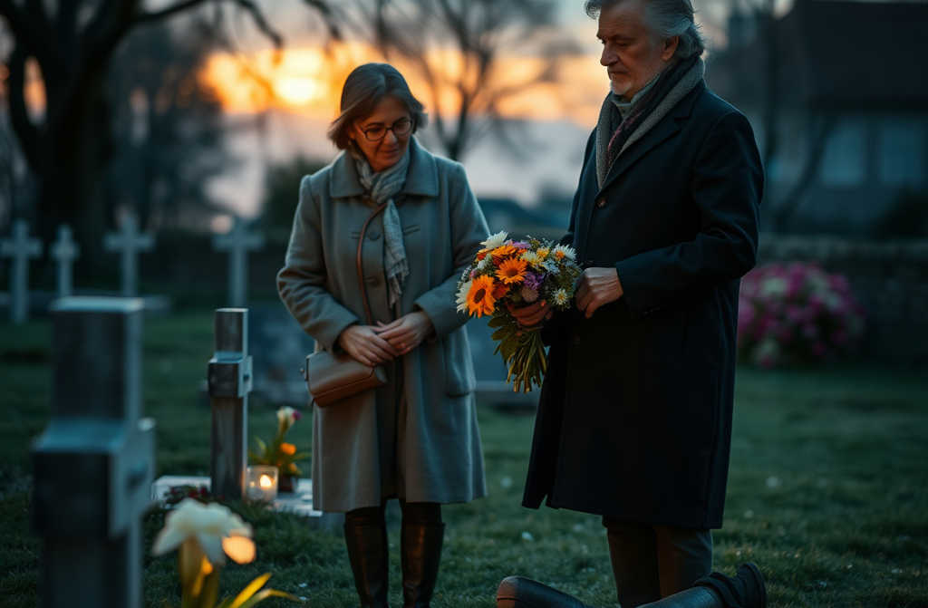 He parked close to the path. I left my car farther back and followed on foot. I saw him get out, take a bag from the back seat, and walk at an easy pace. He wasnt on his phone. He wasnt meeting anyone. He stopped beside a grave. He knelt down. He took out flowers from the bag, wiped down the headstone with his shirt sleeve, and sat there, motionless.
