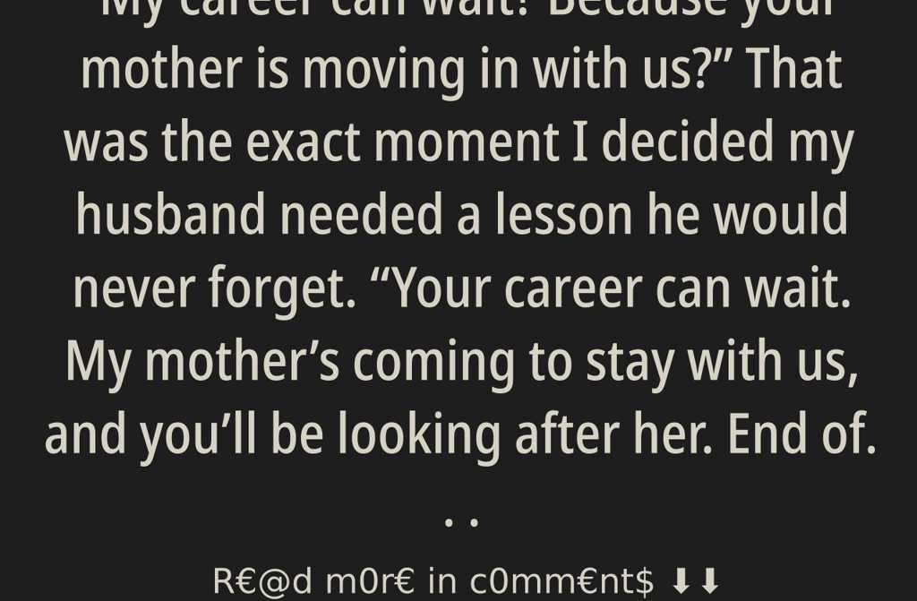 Your career can wait. My mothers coming to stay with us, and youll be looking after her. End of discussion.