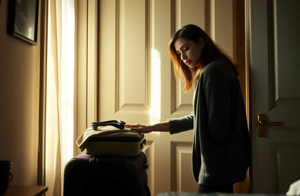 He heard the noise, came in, and when he saw the suitcase he froze.