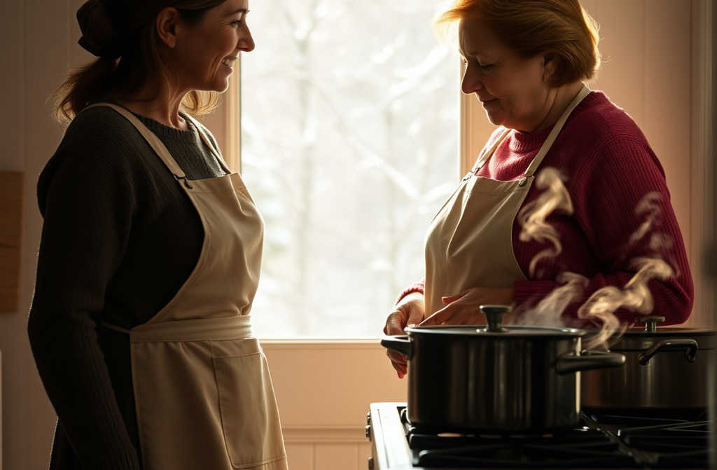 I took off my coat, put on the apron, and began chopping the veg. She nodded, satisfied, and went back to her stew.