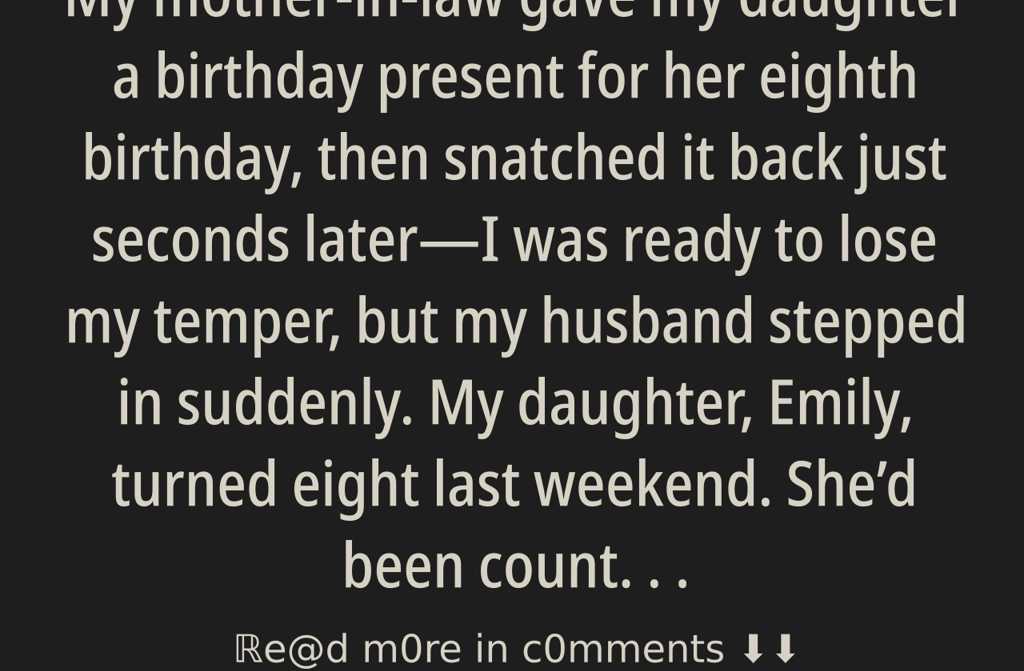 My mother-in-law gave my daughter a birthday present for her eighth birthday, then snatched it back just seconds laterI was ready to lose my temper, but my husband stepped in suddenly.