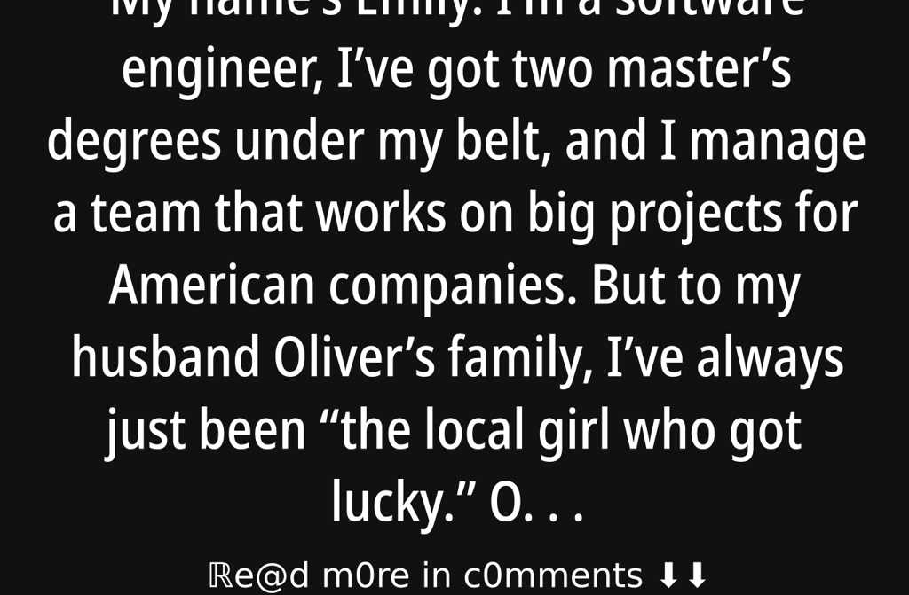 But to my husband Olivers family, Ive always just been the local girl who got lucky.
