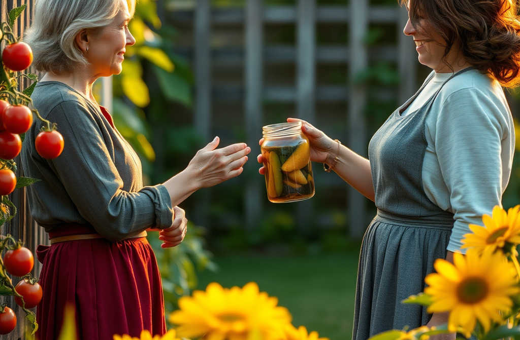 Autumn came and as we packed up for the year, Margaret approached the fence. In her hands was a jar of pickled cucumbers of varying shapes and sizes.