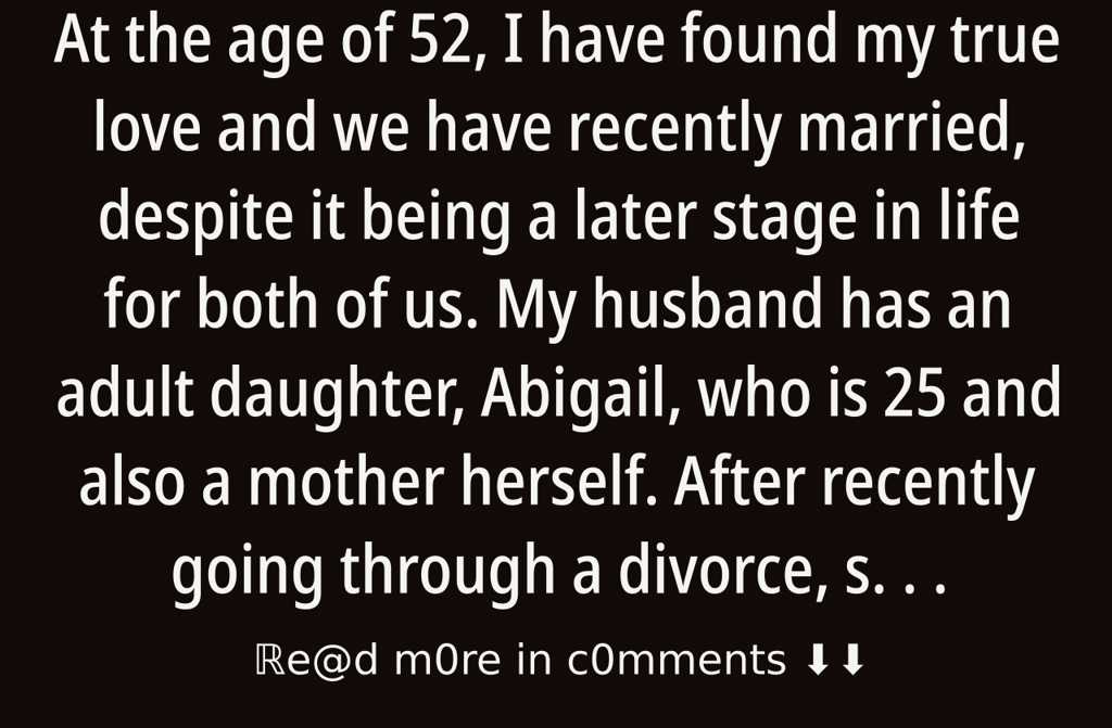 At the age of 52, I have found my true love and we have recently married, despite it being a later stage in life for both of us. My husband has an adult daughter, Abigail, who is 25 and also a mother herself. After recently going through a divorce, she’s faced a number of challenges, and has decided to move closer to her father for support.