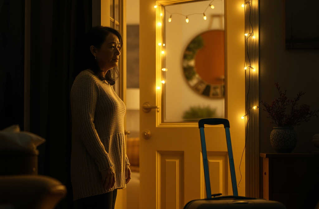 Not long after, she picked up her suitcase and left. The door clicked shut behind her.
