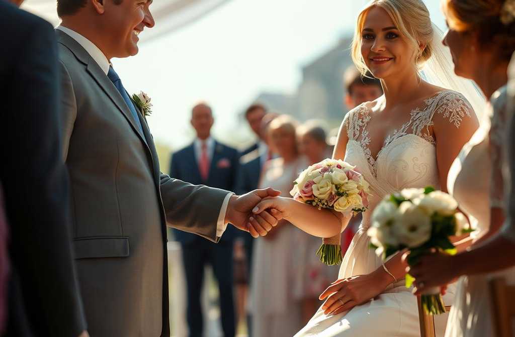 Music swelled. Guests turned their heads. The wedding procession began, everyone glowing with happiness.