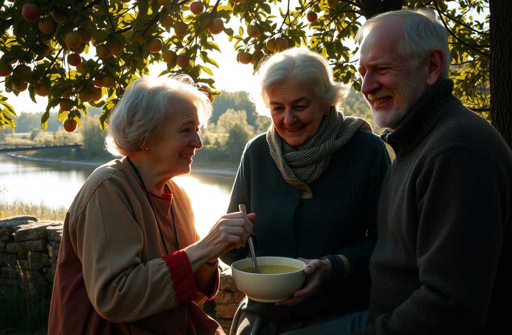 Under an ancient, spreading apple tree, two old folk sat side by side. He was tinkering with a wooden whistle for the local children; she was peeling new potatoes into a bowl, chatting softly about how her cucumbers had turned out this year. Sunlight filtered through the leaves, dappled their faces, their hair, their hands. A hush settled over the garden, such peace that you could almost hear the earth breathing.