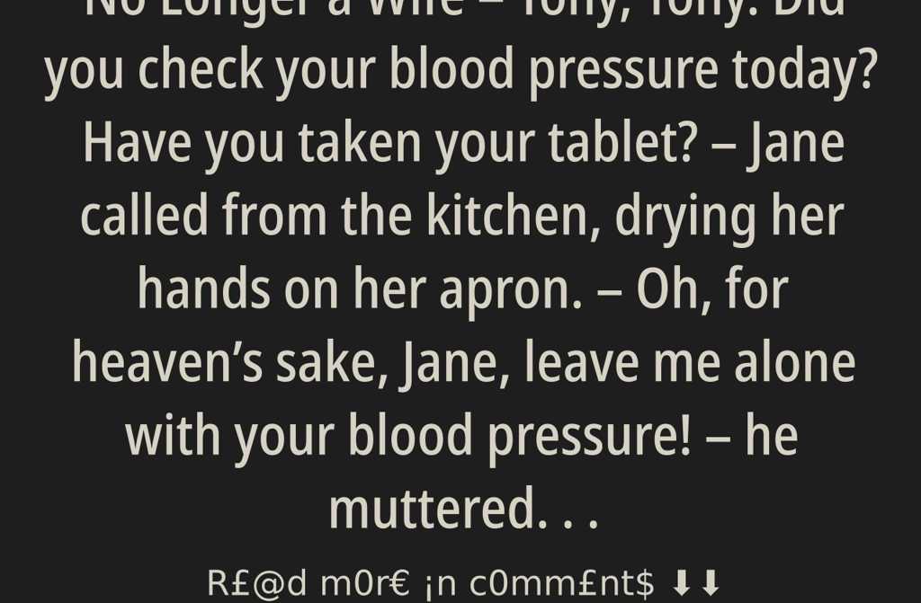Tony, Tony. Did you check your blood pressure today? Have you taken your tablet? Jane called from the kitchen, drying her hands on her apron.