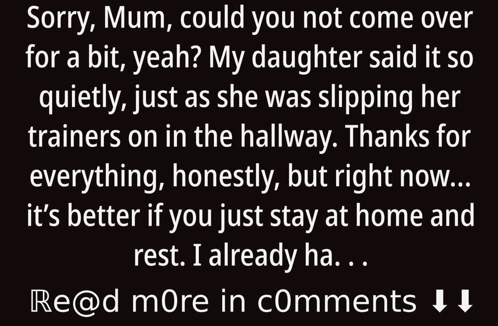 Sorry, Mum, could you not come over for a bit, yeah? My daughter said it so quietly, just as she was slipping her trainers on in the hallway. Thanks for everything, honestly, but right now its better if you just stay at home and rest.