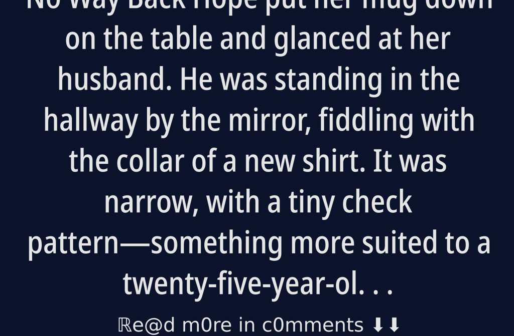 Hope put her mug down on the table and glanced at her husband. He was standing in the hallway by the mirror, fiddling with the collar of a new shirt. It was narrow, with a tiny check patternsomething more suited to a twenty-five-year-old lad, not a man just weeks away from his fiftieth birthday.