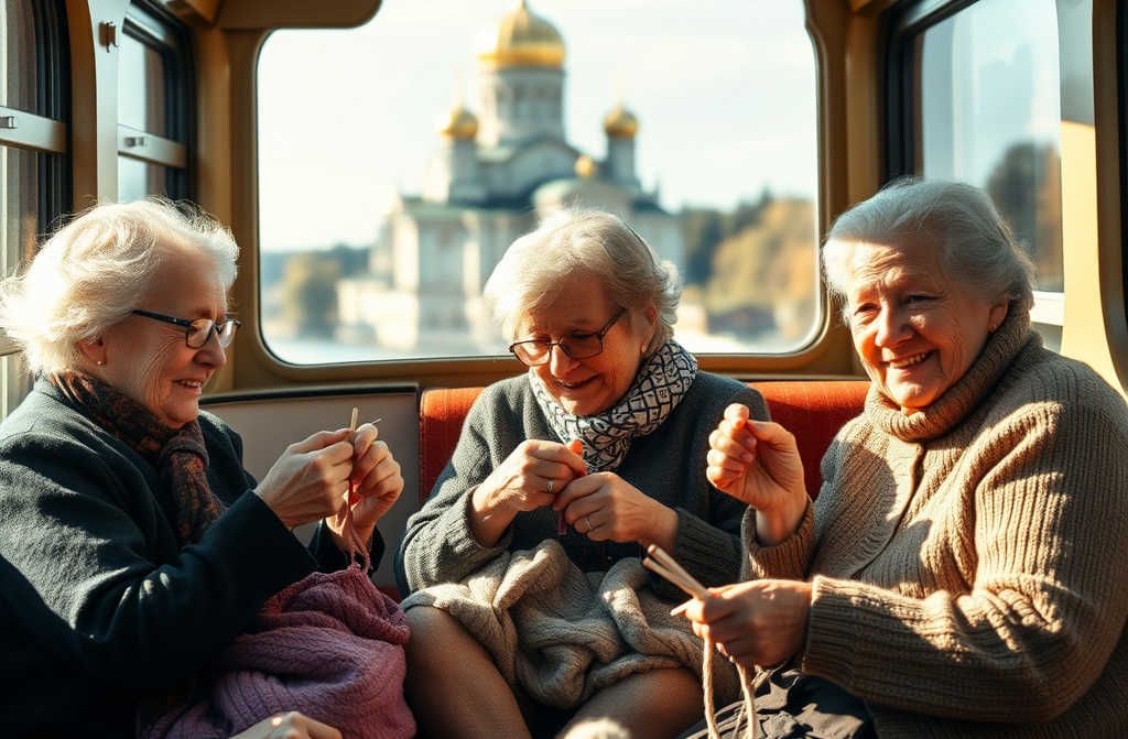 I was sitting on one of the side benches, and in the next compartment, three elderly ladies were swapping recipes for scones and tips for knitting woollen socks. The train crossed a bridge, and out the window stretched a breathtaking view: a clear blue sky, sunlight glinting on a broad river, its surface ruffled with gentle waves. Atop a grassy hill stood an ancient stone church, its weathered spire shining in the mellow light.