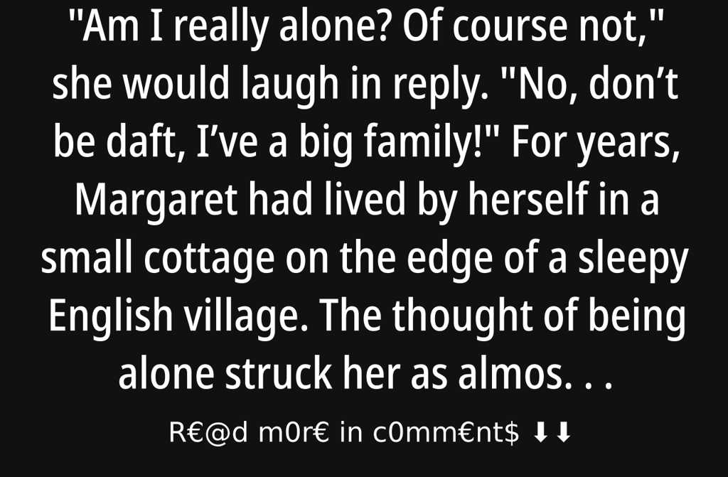 For years, Margaret had lived by herself in a small cottage on the edge of a sleepy English village. The thought of being alone struck her as almost comical whenever someone hinted at her isolation. The village women would smile knowingly and nod, but once Margaret turned away, theyd shoot glances at each other, whirling a finger near their temples that one, shes got a screw loose, claiming she has a family when theres not a soul but herself, no husband, no children, not even a cousin who visits, just like an animal